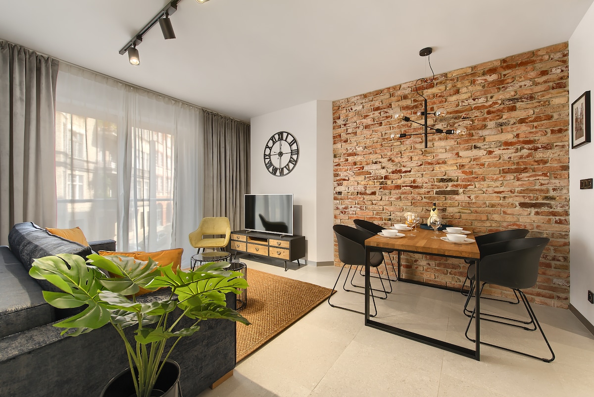 We invite you to a stylish apartment in the heart of Poznań at Swiety Marcin. The apartment is freshly renovated, designed by interior designers with attention to detail. It has a fully equipped kitchen, a beautiful bathroom, a large living room with a comfortable sofa, a table with chairs and a smart TV. The bedroom has a large double bed (160x200cm) and wardrobe. Apartment is located on first floor and is very quiet, because it is located in the courtyard.