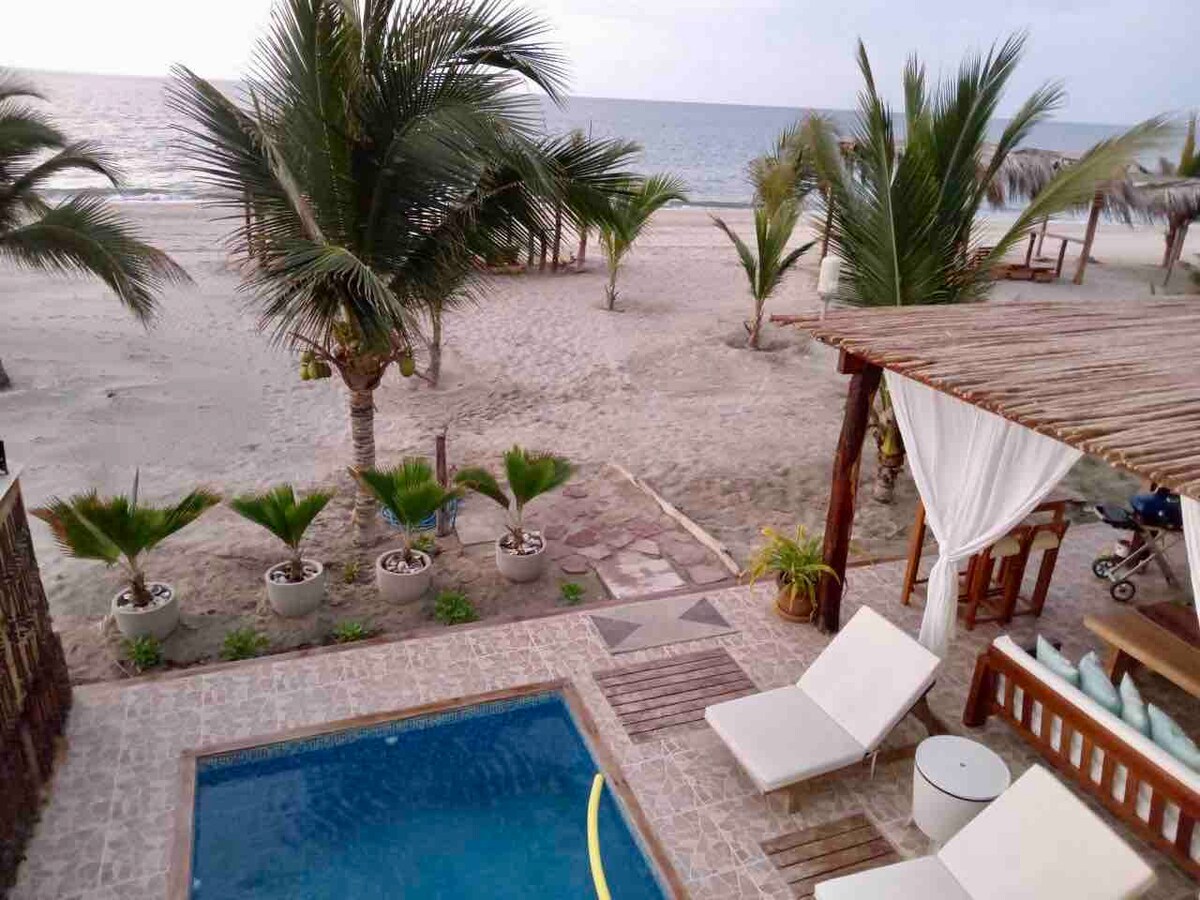 Fullkomið fyrir hópa og fjölskyldur!!! 5 herbergi með A/C. Stofa, borðstofa og hjónaherbergi með framúrskarandi sjávarútsýni. Borðstofuborð fyrir 12 og verönd borð fyrir 6, heill þjónusta fyrir 18. Eldhús fullt. Verönd og einkasundlaug. Beinn aðgangur að ströndinni. ÞRÁÐLAUST NET og sjónvarp. Hússtjóri (kl. 9-17). Hægt er að skipuleggja aukagestgjafa (matreiðslumenn og hreinsiefni) með aukakostnaði. Húsið er staðsett um 35 km frá Tumbes flugvellinum og 5 mínútur til Zorritos borgar (nokkrir veitingastaðir í nágrenninu). Einkabílastæði.