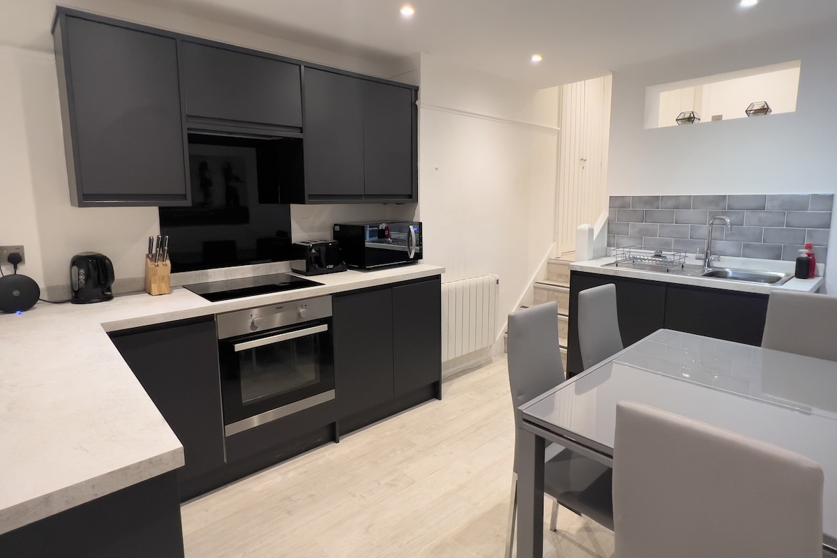 Þægileg og rúmgóð íbúð á neðri hæð í glæsilegu georgísku bæjarhúsi sem byggt var á 1700s. Í hjarta Tunbridge Wells á móti hinni yndislegu, umfangsmiklu, algengu. Þú getur gengið marga kílómetra héðan. Íbúðin er við götu með skammtímastæði með ókeypis bílastæðum í 200 metra fjarlægð. Eða 24 tíma bílastæði í nágrenninu. Með greiðan aðgang að öllum yndislegu veitingastöðum, börum og verslunum í þessum fallega bæ. Lestarstöðin er neðar í hlíðinni.