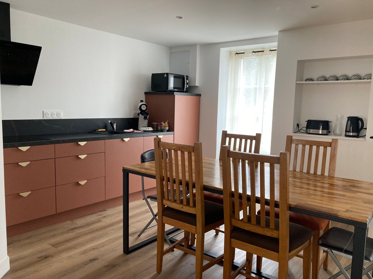 House of 80m2 completely renovated. close to amenities and the historic village of Sainte-Mère-Elise, with a terrace and a large garden. 5 mínútur frá ströndinni. Á jarðhæð: Stofa og fullbúið eldhús og 6/8 manna borð. Stofa með sófa (breytanlegur), flóagluggi með útsýni yfir sólríka verönd frá hádegi og út í garð. Sturtuklefi. Uppi, 2 svefnherbergi. Þjónustan innifelur: Rúm- og baðföt, rúm sem eru búin til.