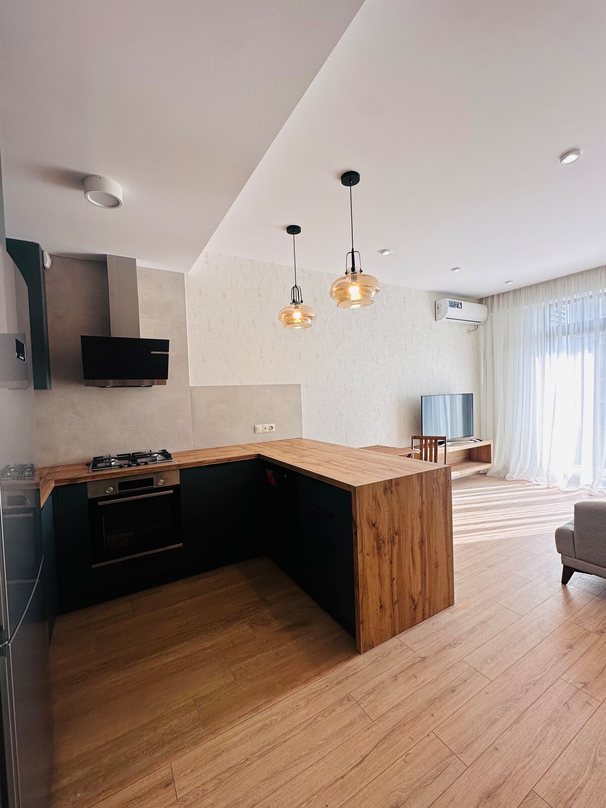 Modern 2-room apartment on the 22nd floor with breathtaking views of the Mtkvari River. Designed with premium finishes, smart home technology (Alexa), and the latest appliances. Situated on one of Tbilisi’s liveliest streets surrounded by top restaurants, cafes, and karaoke bars. Enjoy a 65” TV, a balcony jacuzzi, and a Celestron telescope for romantic stargazing nights. Perfect for couples or anyone seeking a luxurious stay.