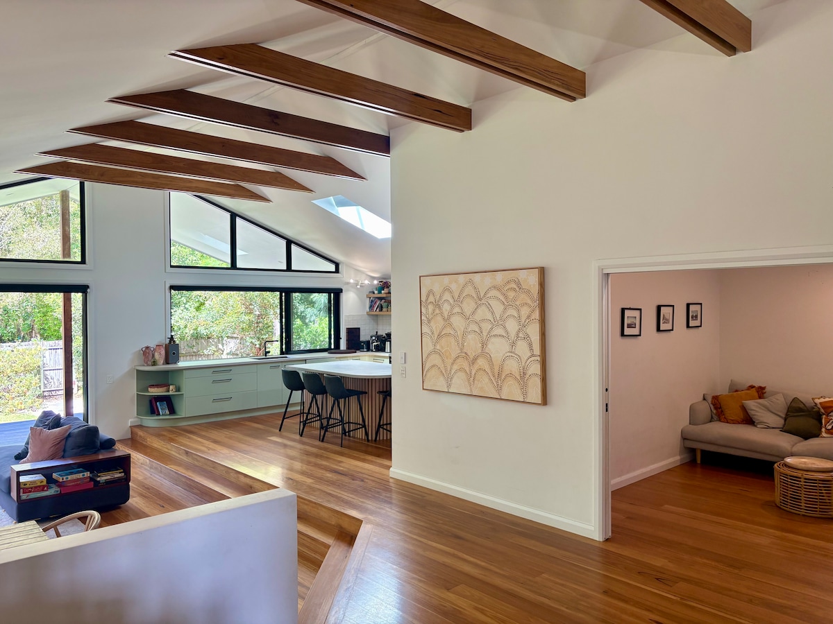 Umkringdur gróskumiklum háum trjám og töfrandi strönd í aðeins 100 metra fjarlægð gæti stórbrotið 3 svefnherbergja afdrep okkar ekki verið fullkomlega staðsett. Hlustaðu á hafið frá veröndinni eða slakaðu á á ströndinni. Þetta rúmgóða, bjarta og fullbúna hús er fullbúið fyrir allar þarfir þínar. STRANGT til tekið er EKKI SAMKVÆMISHÚS og enginn hávaði eftir kl. 22:00. Aðskilið með bílskúr er sjálfstætt 1 svefnherbergi Beach Shack staðsett á neðri afturhæð.