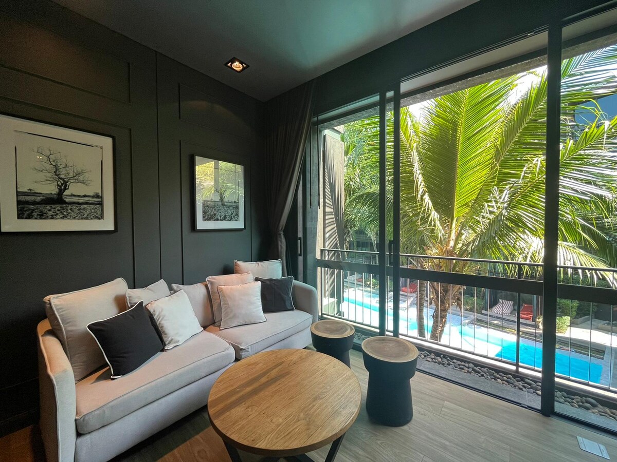Stílhreint, hannað 1 svefnherbergi á 2. hæð, útsýni yfir sundlaugina. Hraði á þráðlausu neti er 1G, notalegur sófi, stórt rúm, líkamsrækt, jóga, sundlaug, bókasafn, kaffihús og allt sem þú þarft fyrir orlofsdvöl er hér. Þrif kosta 500 THB/tíma og rúmföt skipta um rúmföt eru 1.000 THB. Rafmagn er 6B/eining og vatn er 35B/einingu.