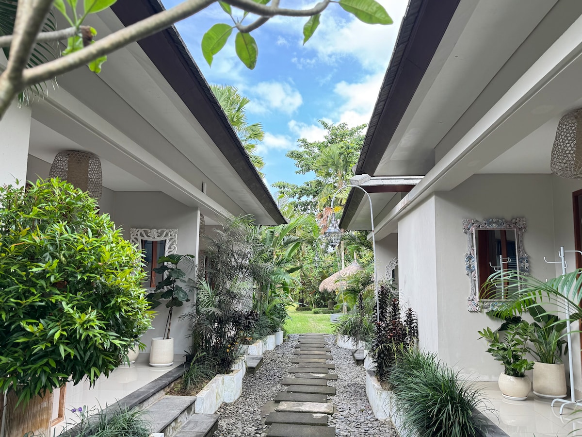 Þessi Villa er fullkomin blanda af Balíverskum og hitabeltisstormi, tileinkuð pari /brúðkaupsferðalöngum sem leita að rómantískum og afslappandi gististað í Ubud því hann er eins og staður í földum garði og afdrep frá ys og þys bæjarins. Hann er með stað sem er nálægt þeim stöðum sem flestir verða að heimsækja í Ubud, í 5 mínútna göngufjarlægð frá aðalgötum Ubud þar sem flestar verslanir, kaffihús, veitingastaðir eru, nálægt Apaskógi, Ubud-markaði og höll.