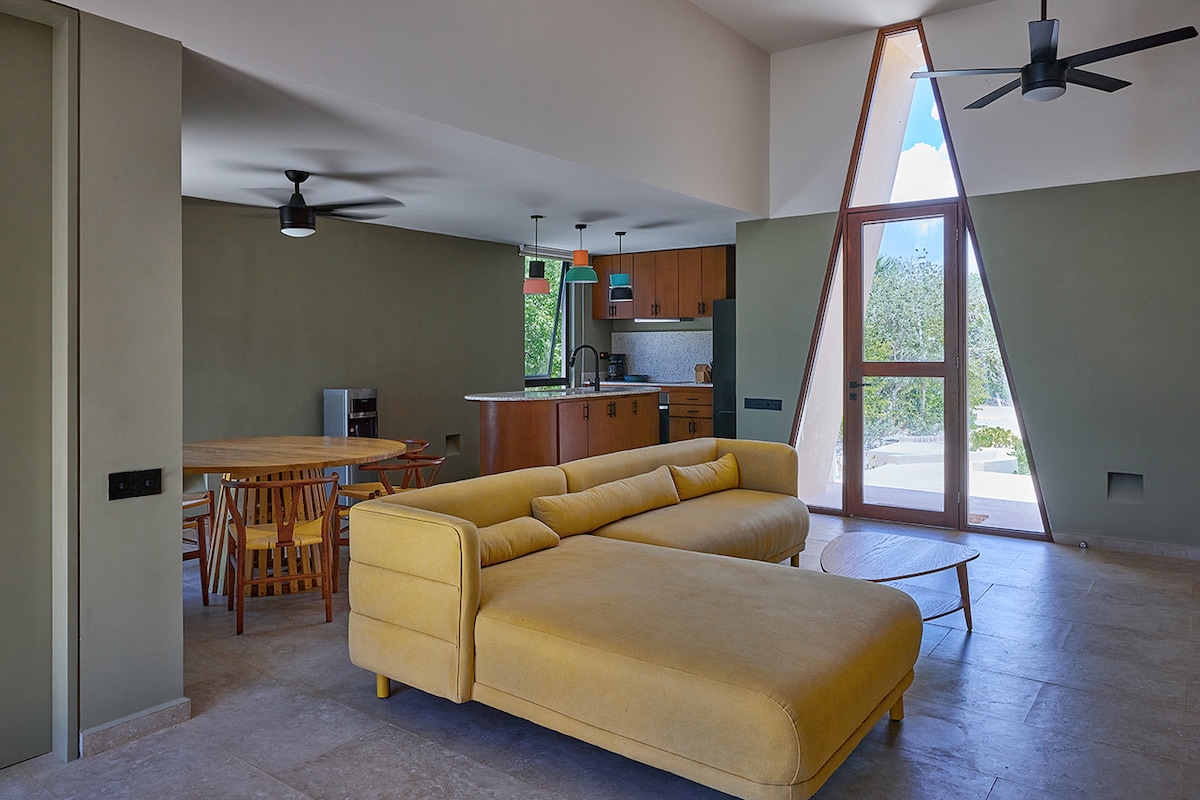 Verið velkomin í friðsæla vin þar sem hönnun og náttúra búa saman í fullkomnum samhljómi í þessu nútímalega tveggja hæða húsi með óaðfinnanlegum arkitektúr sem blandar saman ytra byrði. Staðsett á milli Centro og García Gineresverður þú nálægt öllu í Mérida en nógu langt til að njóta afslappandi dvalar í öruggu og rólegu hverfi. Casa Hannah er með opið skipulag með öllum þægindum eins og loftræstingu, háhraða ÞRÁÐLAUSU NETI, sundlaug, fullbúnu eldhúsi og myrkvunargluggatjöldum.