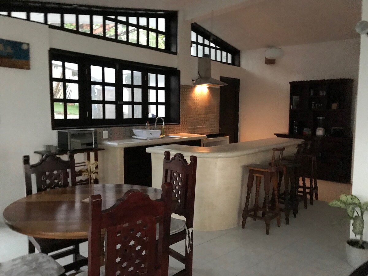 Casa del Cenote Negro er tilvalin fyrir fjölskyldur sem vilja njóta Laguna Bacalar. Það er með sveitalegt opið gólfefni með stóru eldhúsi og borðstofu með nægu plássi fyrir fjölskyldusamkomu. Það eru tvö svefnherbergi með king-size rúmum og 3. herbergi með 2 hjónarúmum til viðbótar. Það er verönd við vatnið með stórkostlegu útsýni yfir Cenote Negro, nóg af sætum fyrir máltíðir utandyra og hengirúm. Bryggjunni við vatnið er deilt með gestum í öðrum íbúðum á lóðinni.