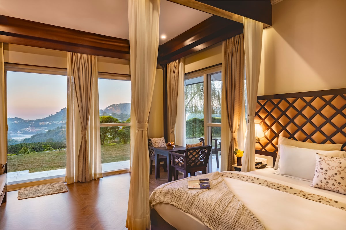 Í minna en 6 klst. akstursfjarlægð frá Delí er þetta gróskumikla, græna landslagsafdrep, 800 mtr frá Nackuchiatal Lake, nálægt Bhimtal. Í einkaeign sem snýr að Himalajafjöllum eru 4 bústaðir, þ.e. Sakura, Magnolia, Hibiscus, Gulmohar með pvt-svölum og aðliggjandi baðherbergi. Jacuzzi in some and are made using pinewood, stone and glass. Þú gætir einnig notið ýmissa leikja eins og badminton, golfs og bogfimi. Bátsferðir/kajakferðir við vatnið. Allir matsölustaðir á sólpalli úr gleri eru í miklu uppáhaldi.