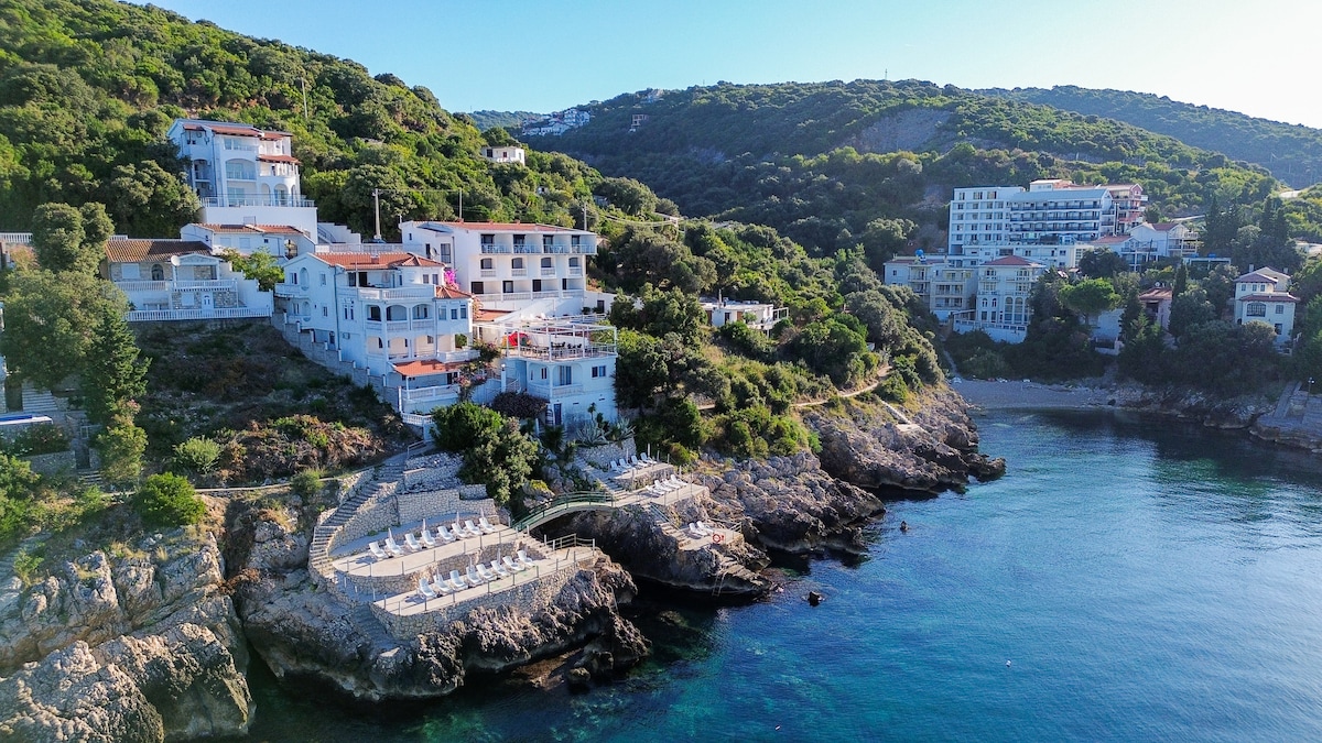 "Rúmgóð 1 herbergja íbúð staðsett í uvala Paljuškovo í Bar,nokkrum skrefum frá steinströndinni þar sem þú getur fundið vatnið og heyrt öldurnar úr stofunni þinni! Setja á ströndinni á besta stað, á mest áberandi stað í landinu, þetta er einn af vinsælustu valkostunum meðal Airbnb ferðamanna sem ákveða að heimsækja Svartfjallaland.