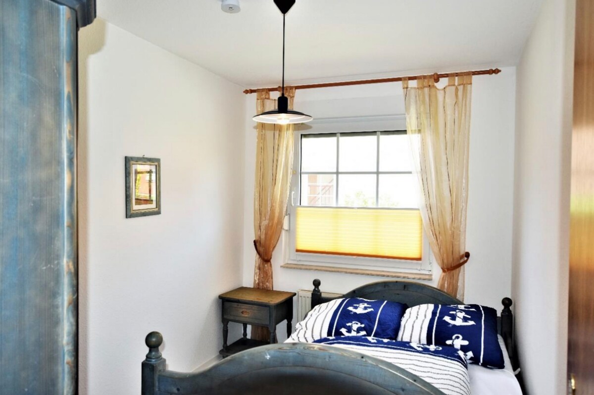 Dvalarstaðurinn Altefähr við sjávarsíðuna er staðsettur á stærstu eyju Þýskalands, Rügen, við Strelasund og tengist sögulegu hafnarborginni Stralsund gegnt næstum allt árið um kring með ferju. Húsið er hluti af orlofsgarðinum Sonnengarten, aðeins tveggja ára gamalt og með nýstárlegum búnaði. Húshelmingurinn okkar er meira en 80 fermetrar á tveimur hæðum sem gerir það að stærstu tegund hússins sem rúmar fimm manns. Altefähr er staður fyrir vatnaíþróttir, veiðimenn, hvers kyns frí og strönd.