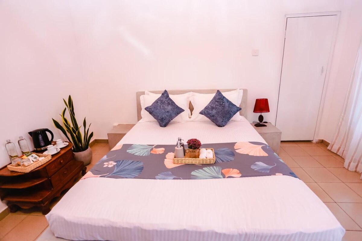 Stökktu í friðsæla hönnunarherbergið okkar Ja Kotuwa þar sem þú getur vaknað við magnað útsýni yfir vatnið og verið á ströndinni innan nokkurra mínútna. Þetta glæsilega afdrep býður upp á fullkomna blöndu af nútímalegum lúxus og kyrrlátri náttúrufegurð. Upplifðu friðsæld og friðsæld sem er algjörlega hönnuð með næði og helgidóm í huga.