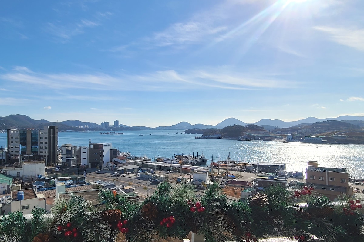 🍀🍀 „Marina Port“ Terrace Ocean View Accommodation Verið velkomin ~ ~ ^😍😍🍃🍃🍃🍃 ¤ Fyrirspurnir- > Vinsamlegast hafðu samband við okkur í gegnum Abnb skilaboð eða ☎️ 010 9977 3819. ⚘️ Ný sjávarútvegsborg í miðborg Yeosu Umhverfið er hreint og rólegt.👍 ⚘️Gisting í miðbæ Marine City í Ungcheon🐬🐬 (Netflix, YouTube, Disney Plús í boði: auðkenni áskilið) ⚘️ Hreinn byggingarstaður fyrir nýtt hótelíbúðarhúsnæði „Gisting með fullri valmöguleika“ Á ⚘️ „rúmgóðri verönd“ í 3 pyeong, sem er aðeins sérhæfð á gólfi gistiaðstöðunnar, Það er stórt útiborð svo að þú getur séð fallegt útsýni yfir smábátahöfnina. Hægt er að neyta matar á útiveröndinni (Chimakgood)👍 Sjálfsafgreiðsla og þvottahús með ýmsum þægindum ⚘️í gistiaðstöðunni ⚘️Njóttu: Strönd nálægt gistingu og Yi Sunshin-garði. Gönguferð um Jangdo-eyju. Smábátahöfn „Woongcheon sjávarleðja“ (Chinsu-garður), sjávarafþreying, skemmtisiglingar o.s.frv. ⚘️ Matur: Mörg kaffihús og veitingastaðir í göngufæri (1 mínútu göngufæri frá matvöruverslun. Stór matvöruverslun í boði) ⚘️Við munum alltaf reyna að sinna gistingu þægilega💕💕