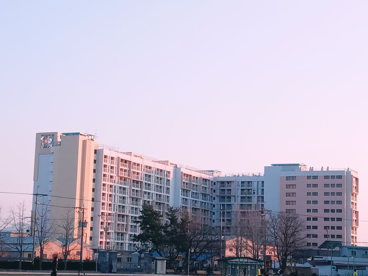 * * * Yeosu Run gistiheimili (Gott verð). Þetta er rúmgóð gistiaðstaða í fjölskyldustíl (40 pyeong) sem hentar allri fjölskyldunni og vinum. Hreinsun er í forgangi með hreinum rúmfötum Flestir gestir eru ánægðir með hreinlæti gististaðarins. Það er þaksvöl, svo það verður besta rýmið fyrir grill og eld. (Að undanskildum notkunargjaldi, bókun einum degi fram í tímann) Loftkæling er uppsett í hverju herbergi Það er staðsett í 5-15 mínútna fjarlægð frá helstu ferðamannastöðum eins og Dolsan Bridge, Maritime Cable Car, Cruise (Cruise Ship), Art Land, Ramada Zip Line, Yeosu Night Sea, Gejang Alley, Big O Show, Aqua Planet, Dolsan Starbucks, Famous Cafe, Strawberry Mochi Dolsan Direct Store o.s.frv., svo það er gistiaðstaða með góðu aðgengi að ferðamannastöðum. Hún er staðsett á 3. hæð og vinsamlegast notið stigann til að komast inn ^ ^ Ef þú ert aldraður og finnur fyrir óþægindum við að nota stiga skaltu velja vandlega. Við bjóðum upp á aukatæl og -kodda fyrir bókanir fyrir 4 eða fleiri.