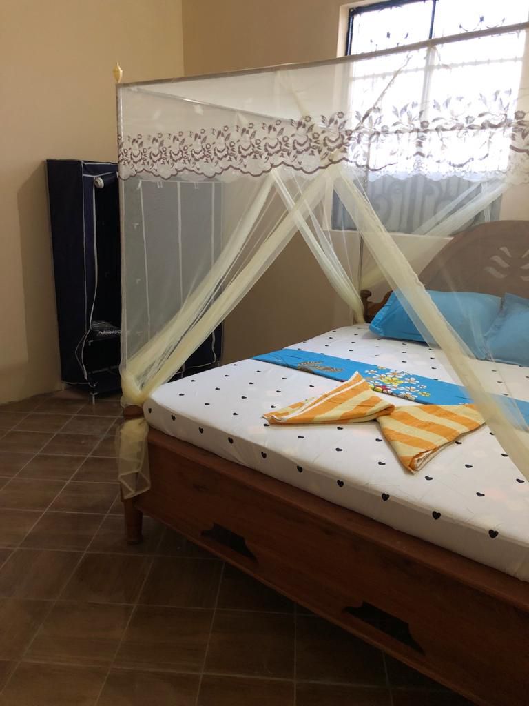 Stökktu í friðsæla gestahúsið okkar í runna Zanzibar. Tvö rúmgóð og björt herbergi bjóða upp á sérbaðherbergi, svalir/verönd og inngang. Herbergin eru með stóru rúmi fyrir fullkomin þægindi. Deildu útieldhúsinu okkar, garðinum og yfirbyggðum setusvæðinu. Líkamsræktarstöðin okkar er staðsett í nágrenninu (5 mínútna göngufjarlægð); jóga, dans, box og líkamsræktartímar eru í boði.Fallega ströndin með veitingastöðum er í 10 mínútna göngufjarlægð. Upplifðu kyrrð og þægindi í paradís.
