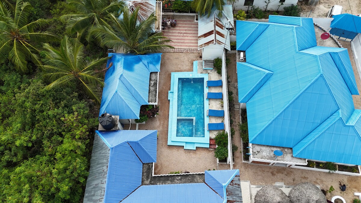 Mbili Villas eru 2 þriggja rúma villur, austur og vestur. Þessi skráning er fyrir einkavillu í austurhlutanum með auknu sameiginlegu eldhúsrými ásamt rúmgóðri efri hæð til að slaka á. Morgunverður innifalinn, einkasundlaug er opin allan sólarhringinn svo að þú getir notið hans. Þú gætir eða mátt ekki hafa aðra gesti frá West Villa til að deila sameigninni með. Við erum staðsett í miðborg Jambiani, nálægt öllum vinsælu börunum, veitingastöðunum og þægindunum og í 5 mínútna akstursfjarlægð frá Paje.