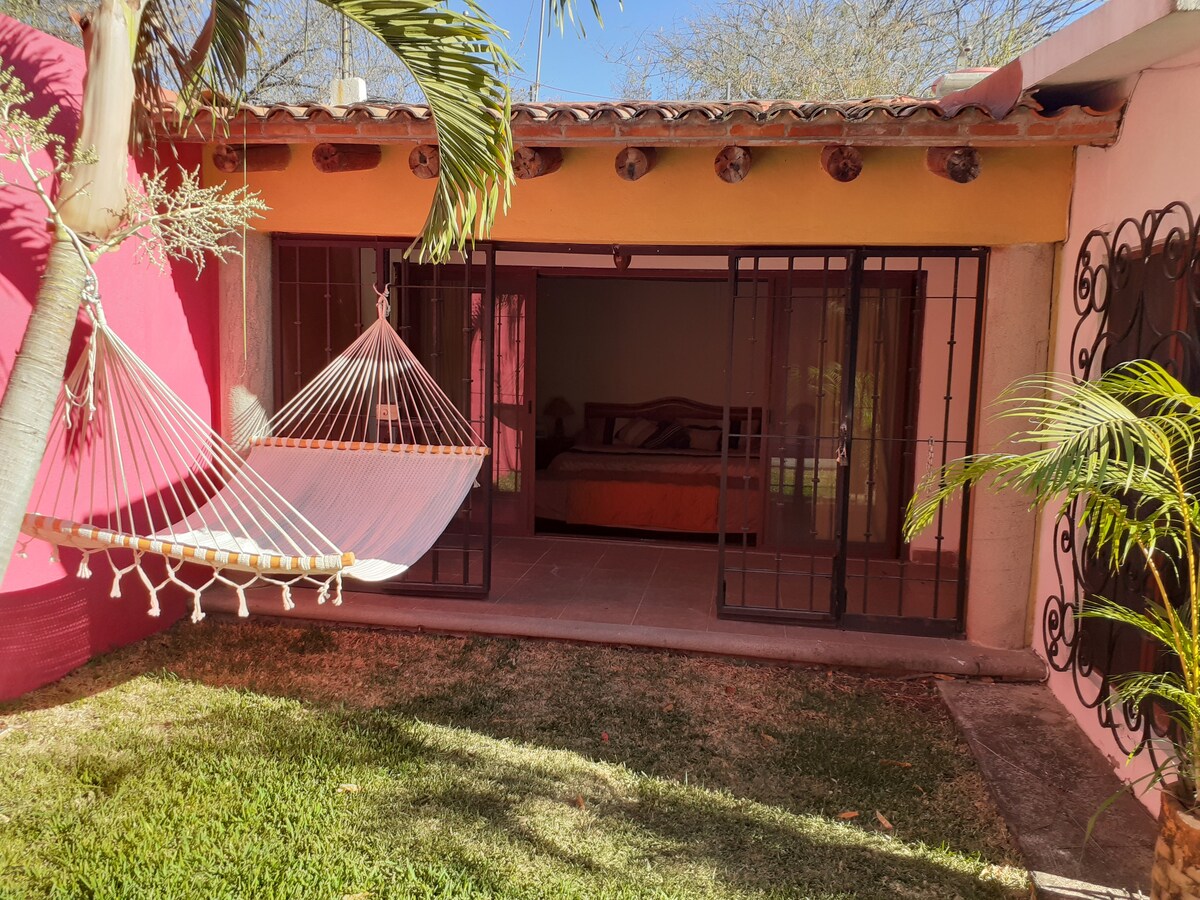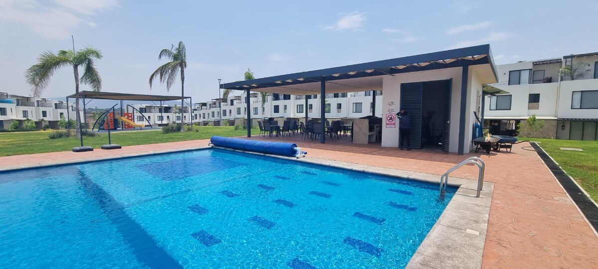 Komdu og njóttu veðurblíðunnar í Cuernavaca. Fallegt lítið íbúðarhús staðsett í íbúðarhverfi, í aðeins 3 mínútna fjarlægð frá miðbænum. Þetta er sjálfstætt einbýli, inni í eign þar sem er hús. Á sameiginlegum svæðum er sundlaug, einkabílastæði, háhraða þráðlaust net og óviðjafnanlegt útsýni. Garður og sundlaug svæði eru einka, einkarétt fyrir þig og félaga þína. Laugin er ekki með hitara. Þessi staður er frábær fyrir þá sem vilja einka, rólegt rými til að slaka á.