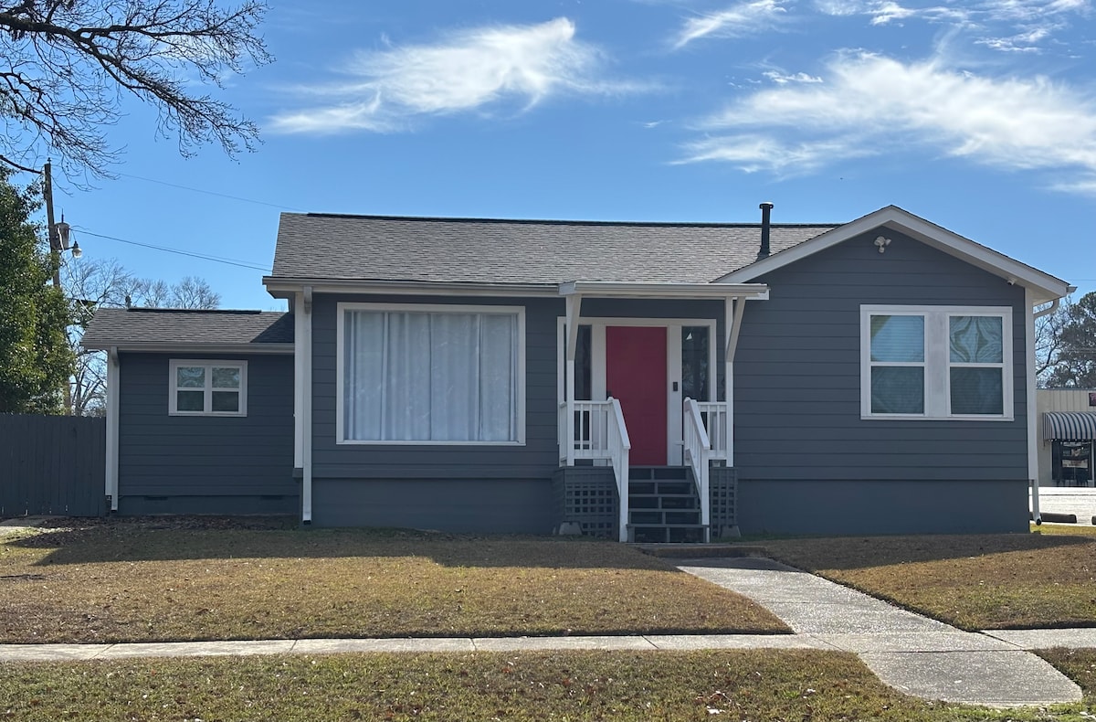 Þetta hús í sumarbústaðastíl hefur verið endurgert að fullu til að fela í sér öll þægindi nútímalífsins. Húsið er búið eldhústækjum úr ryðfríu stáli (þar á meðal uppþvottavél), þvottavél/þurrkara og grill á verönd. Snjallsjónvörp eru bæði í stofu og hjónaherbergi. Gestir geta nýtt sér Netflix eða skráð sig inn á hvaða streymisaðgang sem er. Það er einnig háhraða WIFI OG WIFI prentari staðsett í skrifstofunni sem felur í sér skrifborð, stól og queen size rúm.
