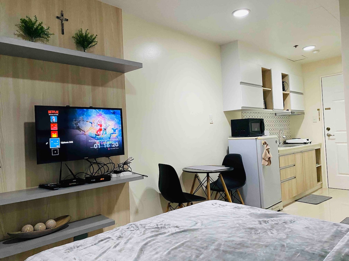 Njóttu dvalarinnar í þessari notalegu og glæsilegu stúdíóíbúð í Mesavirre Garden Residences sem er staðsett í hjarta Bacolod-borgar. Einingin er búin eftirfarandi sem þú getur fullnýtt! - 50 tommu snjallsjónvarp með Netflix og HBO GO - þráðlaust net (ótakmarkað) @300mbps - loftræsting - kæliskápur - hrísgrjónaeldavél - rafmagnsketill - rafmagnseldavél - sturtuhitari - skolskál - eldhúsáhöld og borðbúnaður - straujárn - hárþurrka - inniskór - móttökusett - heiðarleikaverslun - kort og borðspil