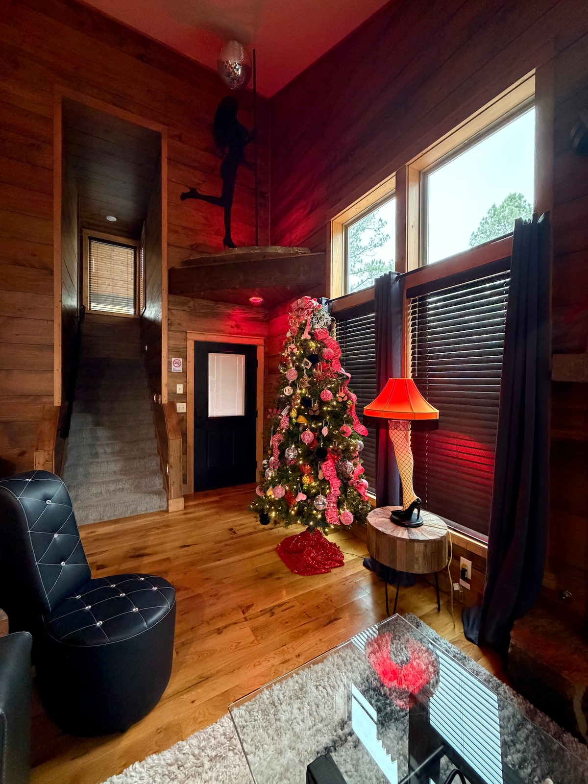 What Guests Love Most: • Peaceful Setting (but close to everything) • Luxury King Bed + High-End Linens • Private Hot Tub on Deck • Professionally Designed Interior • Modern, Fully Equipped High-End Kitchen • Smokeless Fire Pit (firewood provided) • 2GB WiFi + Home Office • Washer/Dryer • Sonos Sound System • All Lights Dimmable Sleeps 4 Comfortably: Primary Loft Bedroom: king bed, dramatic forest views Main Floor: Queen bed (upgraded mattress), 20’ ceilings