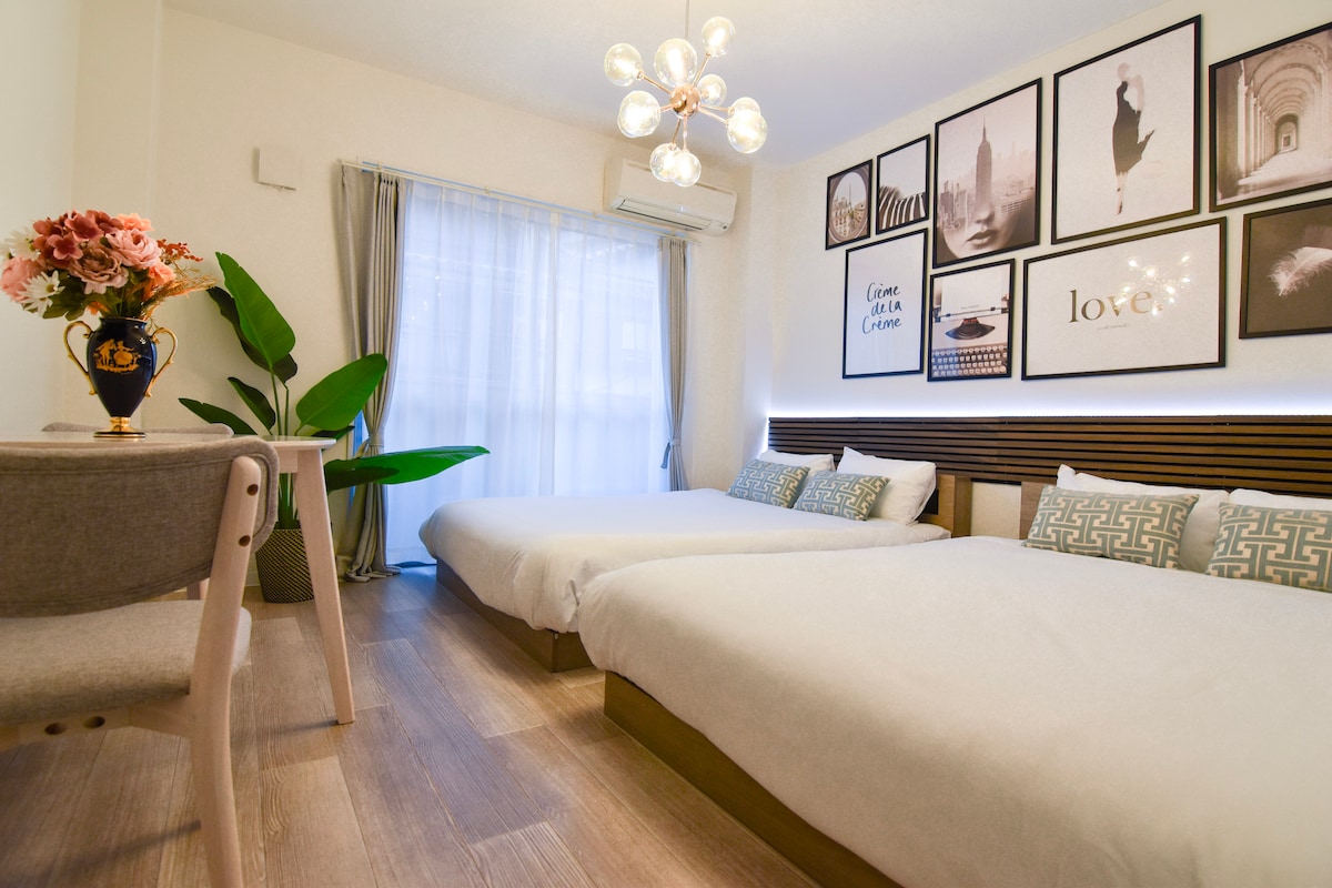 Þetta er rúmgott herbergi í 1LDK. Þægileg staðsetning í 3 mínútna göngufjarlægð frá Osaka-neðanjarðarlestarstöðinni í Osaka og í 13 mínútna göngufjarlægð frá Tempozan og Kaiyukan. Frá Tempo-fjalli er bein flugvallarrúta til Kansai-flugvallar og þar er einnig ferja til USJ sem gerir hana að fullkominni miðstöð fyrir skoðunarferðir. ◆Eiginleikar - Rólegt íbúðahverfi -1LDK rúmar allt að 4 manns - 34 herbergi í heildina svo að þú getur gist í mörgum hópum - 13 mínútna göngufjarlægð frá Tempozan-svæðinu þar sem Kaiyukan er staðsett - Ferry to USJ from the port, which is a 13-minute walk away (12 minutes by boat) - Um 10 mínútna akstur til USJ - Veitingastaðir, matvöruverslanir og matvöruverslanir í innan við 6 mínútna göngufjarlægð - Álagslaust með sjálfsinnritunarkerfi - Ókeypis þvottavél (með ókeypis þvottaefni) - Full þægindi (sjampó, hárnæring, líkamsþvottur, baðhandklæði, inniskór) - Þú getur talað japönsku, ensku, kínversku - Hraðvirkt þráðlaust net