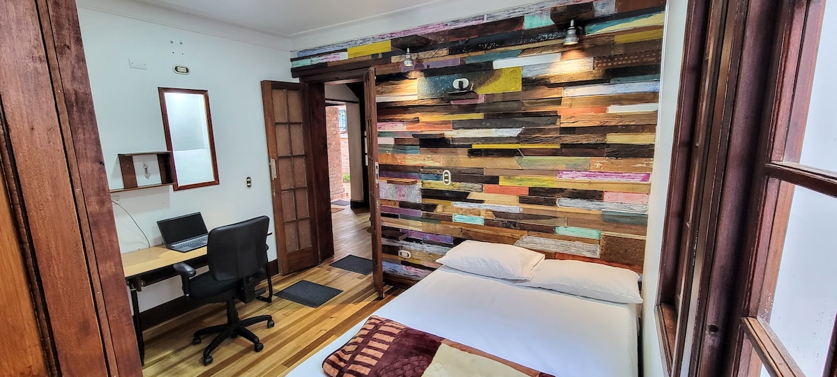 Falleg loftíbúð staðsett í hjarta Bogota. Þetta er í aðeins 5 mínútna göngufjarlægð frá Javeriana University og þetta er mjög þægilegur staður til að njóta bestu staðanna í borginni. Ef þú elskar sögu og gamaldags byggingar í kringum Candelaria verður þú örugglega undrandi af íbúðinni og umhverfi hennar. 100 MB/S Háhraða þráðlaust net fullkomið fyrir fjarvinnu Þvottavél og þurrkari í byggingunni Tvíbreitt rúm sjónvarp sem verður snúið við ef þú vilt vera í rúminu. Netflix inc.