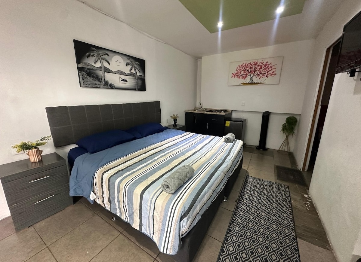 MORADA LIVING Þessi stúdíóíbúð er fullkomin fyrir vini, samstarfsmenn eða ferðamenn sem kjósa að sofa í aðskildum rýmum. Hún er með tvö einbreið rúm, svefnsófa, fullbúið eldhús, snjallsjónvarp og skrifborð. Nútímaleg hönnun gerir hana hagnýta og þægilega fyrir stutta eða langa dvöl. Byggingin er með skemmtilegum sameiginlegum svæðum og er á góðri staðsetningu: nálægt sögulega miðbænum, Colonia Americana og Parque Agua Azul. Þægindi, sveigjanleiki og staðsetning á einum stað.