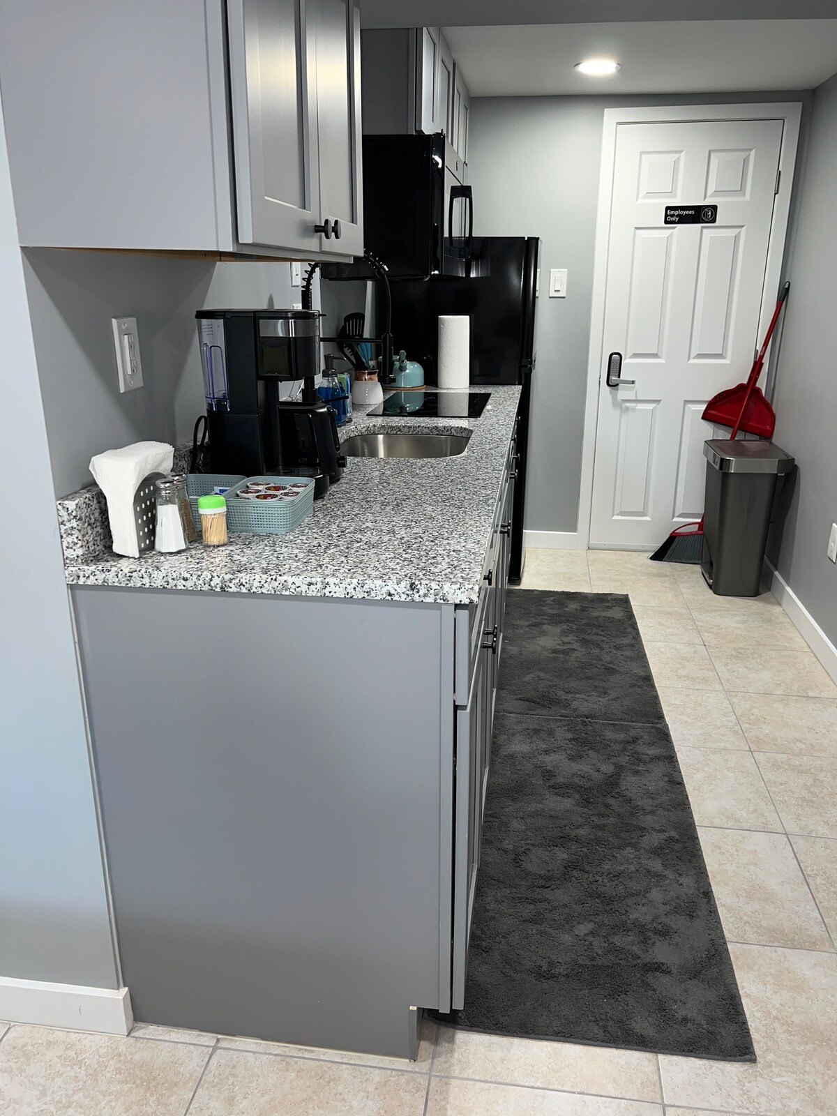 Þessi einkasvíta með einu svefnherbergi býður upp á rólega og þægilega dvöl fyrir pör, einstaklinga og viðskiptaferðamenn. Allt rýmið er þitt, með rúmi í queen-stærð, sturtu, sjónvarpi með streymisþjónustu og hröðu þráðlausu neti. Eldhúskrókurinn er með ísskáp, örbylgjuofni og kaffivél svo að það sé auðvelt að útbúa máltíðir. Sérstök vinnuaðstaða auðveldar fjarvinnu. Það besta er að þú munt hafa þitt eigið einkabílastæði aðeins nokkrum skrefum frá innganginum sem eykur þægindin.