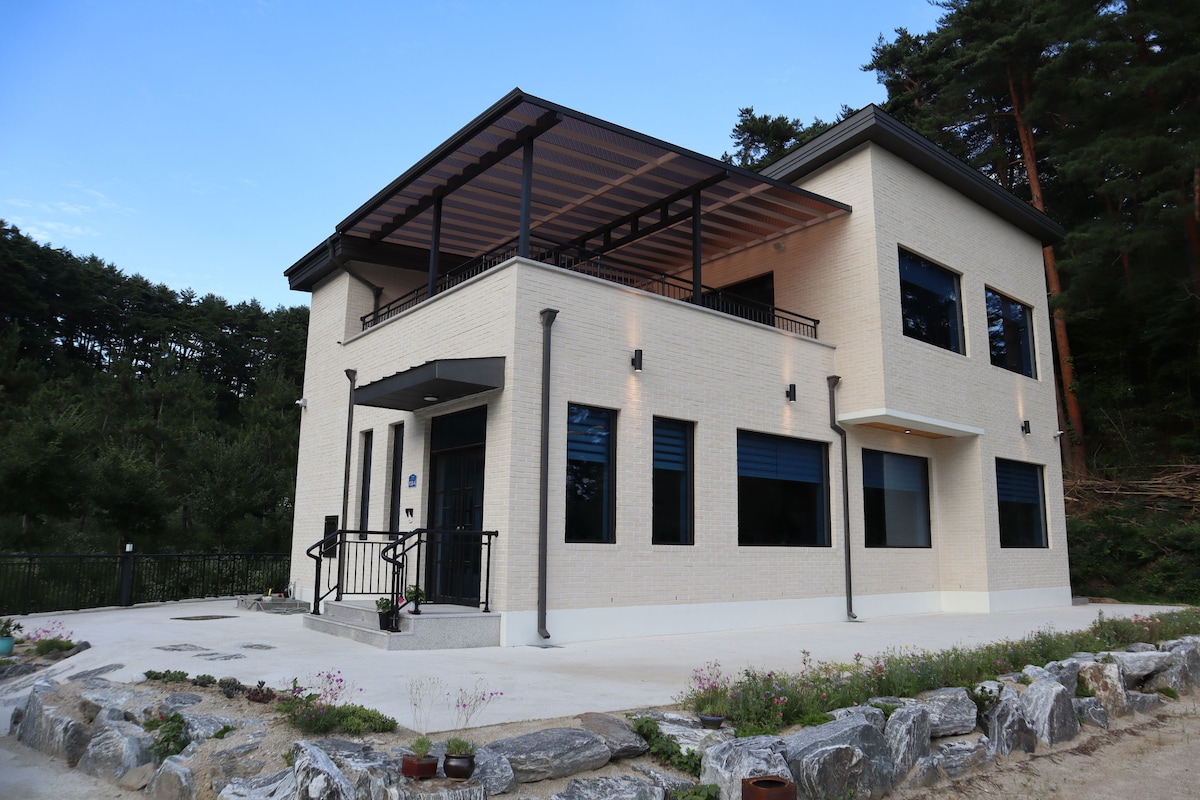 강릉역에서 5분 거리의 조용한 주택가 작은 신축건물입니다.전공이 인테리어 디자인이라 건축에도 관심이 많았습니다.그런 오랜 열망을 낭만가옥에 고스란히 담아 보았습니다. 화이트톤과 wood의 조합으로 지은 모던하고 재미있는 구조의 복층 건물로 일층과 이층에 각각 욕실을 두었고 외부와 완벽히 차단 되어 있으면서도 빛과 바람이 잘 통하도록 설계에 포인트를 주었습니다. 이층에서 보이는 전망과 햇빛과 바람은 이국적이고도 특별하여 고즈넉하기까지 합니다. 일층 데크쪽의 작은 정원에 피고지는 꽃들에서 잠시나마 일상을 잊고 마음을 씻는 여유를 누리실 수 있을듯 합니다