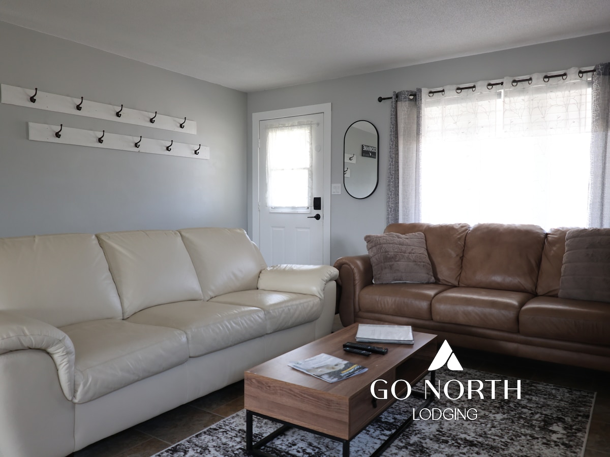 Discover Kapuskasing's beauty in our upscale 1BR, 1BA apt, designed with rustic farmhouse charm a short walk to the Kapuskasing River. Offers modern kitchen amenities, a plush bed, and a living room with a smart TV and a pull-out couch/linens for 2 additional guests. Kitchen area boasts lots of windows with natural light. Enjoy freshly ground coffee beans on our coffee bar. Ideal for a romantic getaway or a restful stop along Highway 11.