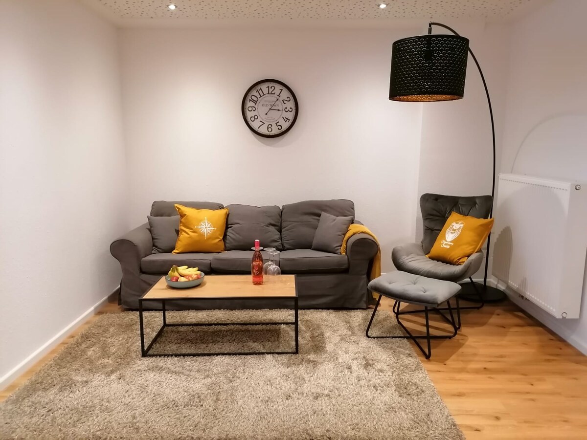 Nýuppgerð íbúð okkar með 1 herbergi er staðsett í hjarta miðbæjar Emden, með útsýni yfir Ratsdelft. Það er innréttað með ást á smáatriðum. Markmið okkar er að bjóða gestum upp á öll þau þægindi sem eru meiri en 30 mílur sem stuðla að ánægjulegri og afslappaðri dvöl. Íbúðin okkar er lítil en falleg og býður upp á eitthvað sérstakt í notalegu andrúmslofti.