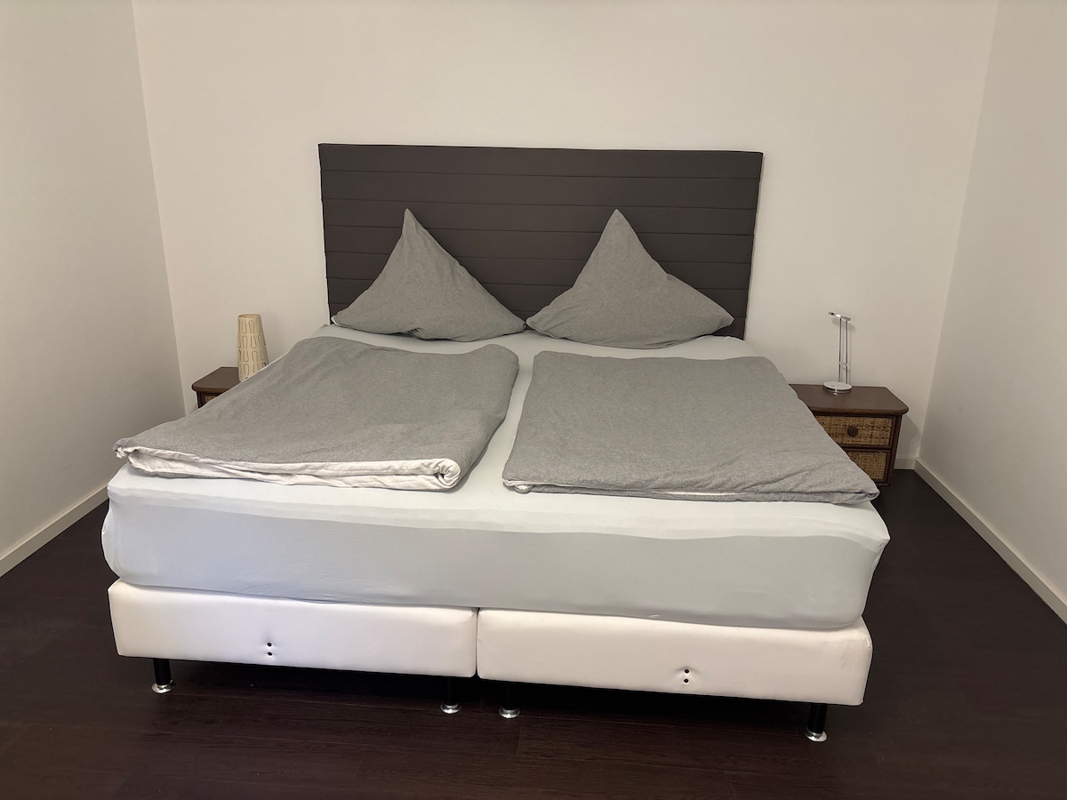Quietly located apartment (54 sqm/581 sq.ft.) in the pedestrian zone with kitchenette, bathroom with shower, terrace, parking lot at the house. Equipment: TV, fast WiFi, underfloor heating (in summertime: air conditioning), queensize bed (1.60m x 2.00m), 2 sofa beds, dining table, desk, kitchenette with fridge, microwave, kettle, mini oven, hob, Senseo coffee maker, dishes , Glasses, cutlery, cookware, CLEANING SERVICE once a week / every two weeks, (depending on the length of stay) INCLUDED