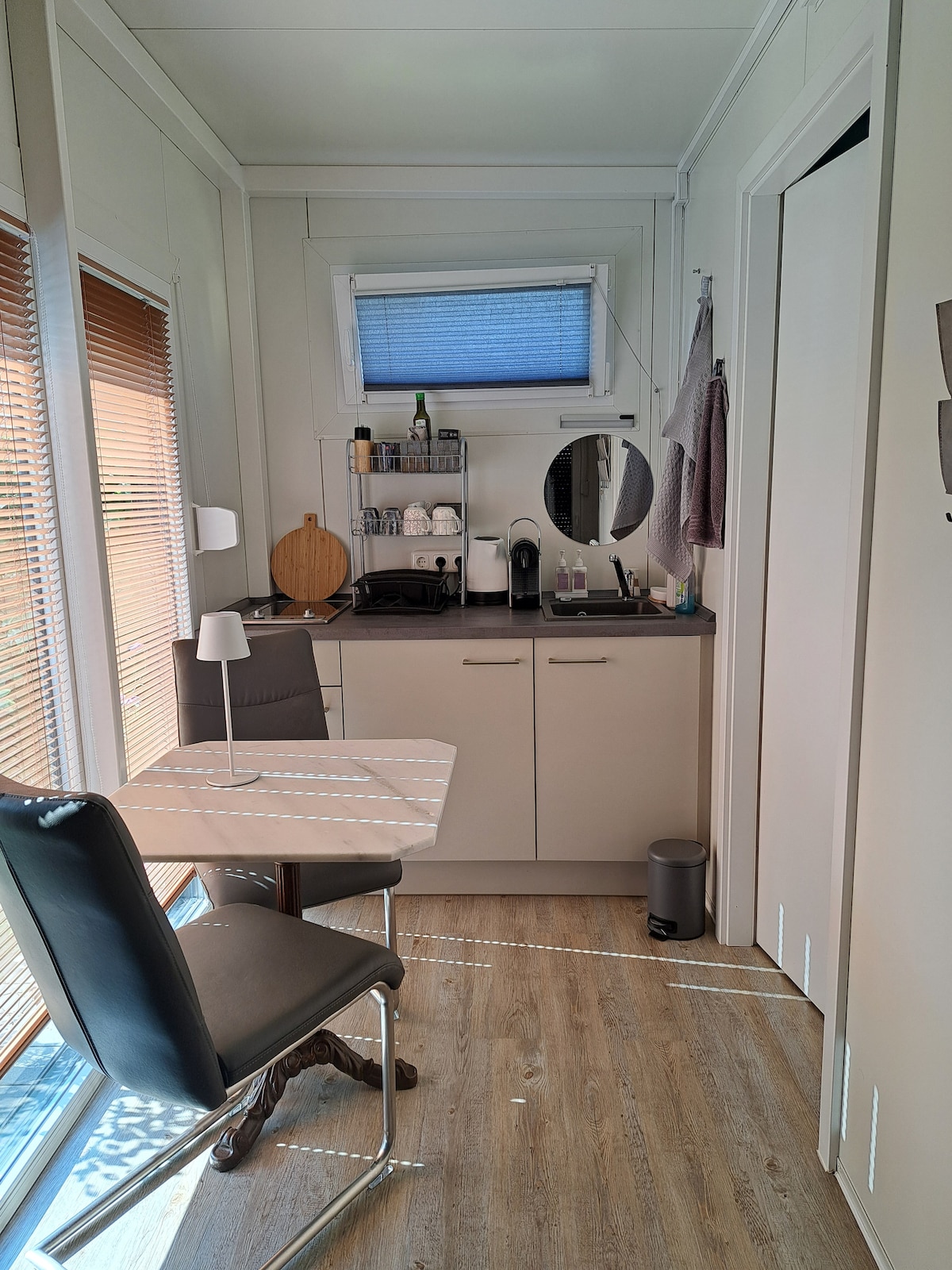 Notalegt smáhýsi á sveitalegu hestabýli. Upplifðu hreina hraðaminnkun. „Lúxusútilega í stað útilegu“ Það er sturta á baðherberginu þar sem þú getur farið í heita sturtu í 3 mínútur. Úti er sólsturta til að fara í heita sturtu á sumrin. Nútímaleg ókeypis náttúrulaug í göngufæri. Rómantíski bærinn Freystadt með allri verslunaraðstöðu er aðeins í 5 mínútna akstursfjarlægð. Það er fljótlegt og auðvelt að ná sambandi við A9.