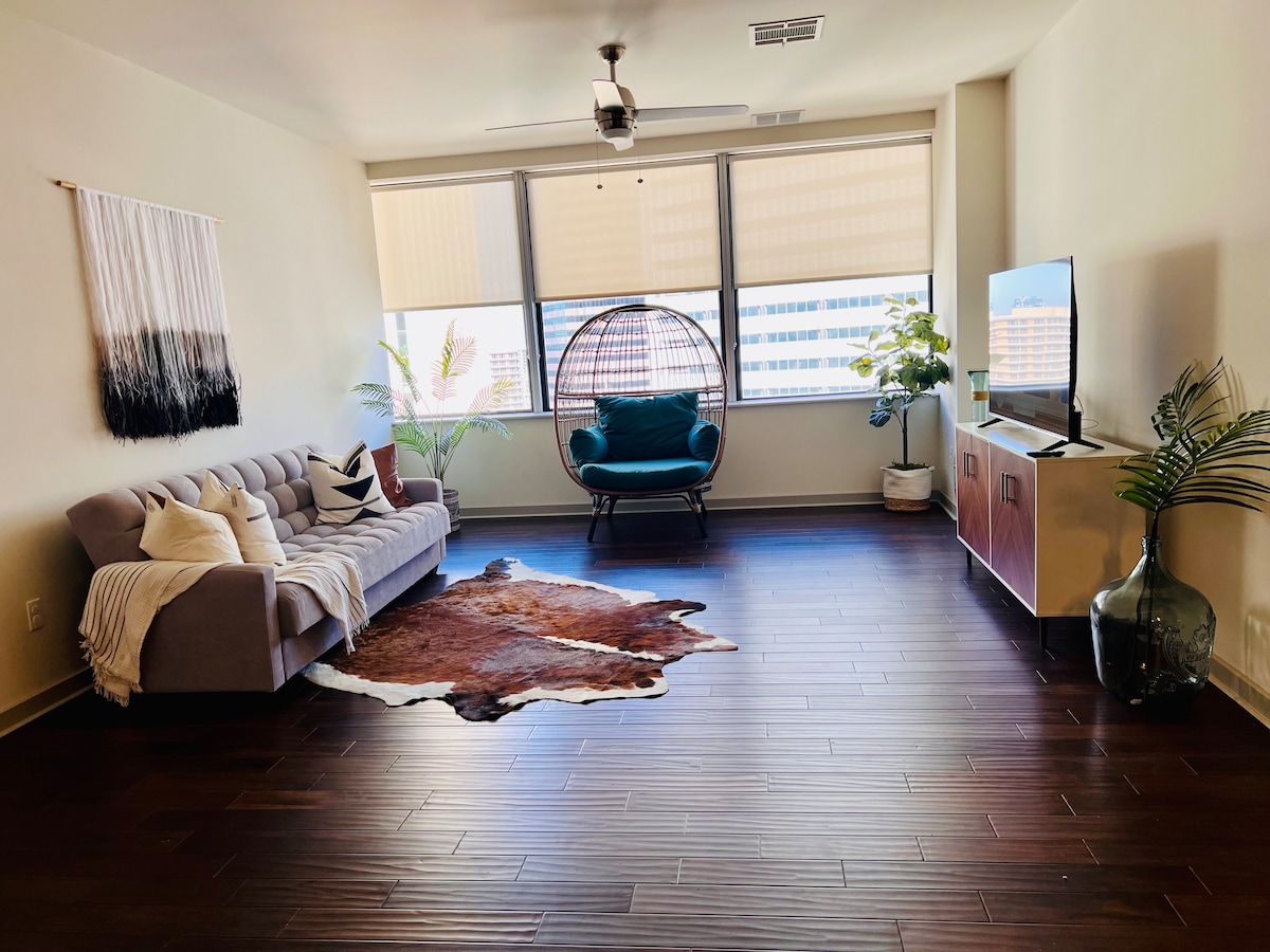 Falleg háhýsi með innblæstri frá Boho í miðborg Dallas nálægt tugum frábærra veitingastaða. Aðeins nokkrum mínútum frá Deep Ellum, American Airlines Center og Dallas Aquarium. Farðu í skoðunarferð um sögulega hverfið og heimsæktu J.F.K Memorial Plaza á meðan þú stoppar til að taka mynd af risastóra augnboltanum. Eða slakaðu á í sundlauginni okkar og líkamsræktarstöðinni.