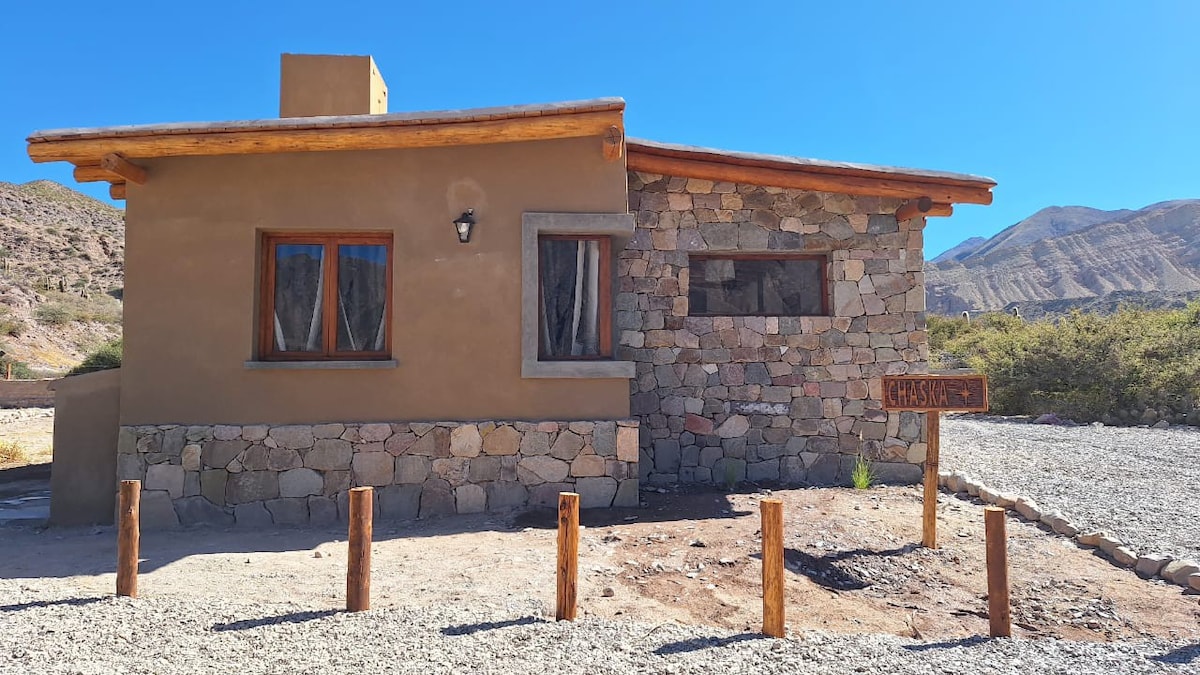 The eco-cabaña Misk'i Nuna is a family, rural and ecological accommodation, where we offer you a quiet place, surrounded by hills and in contact with nature. „La Casita“ er raðað á tveimur hæðum. Hér er vel búið eldhús, Parrilla og leðjuofn. Hér er rúmgóður almenningsgarður sem er sameiginlegur með öðrum kofa. Það er staðsett í 10 mínútna fjarlægð frá miðbæ Tilcara, á Huichaira-svæðinu. Tilvalið að lifa í fullri snertingu við náttúruna og læra af takti hennar.