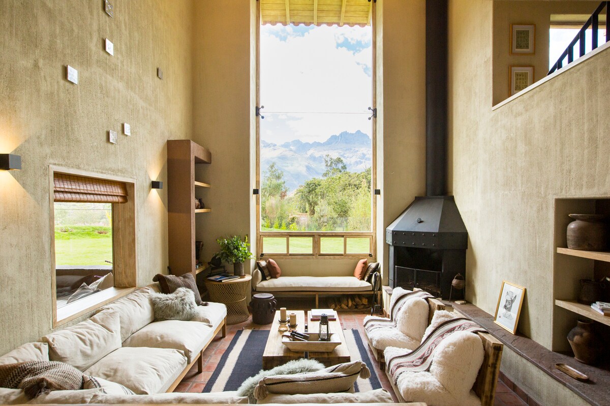 Njóttu þessarar einstöku villu sem er staðsett á hæð Apu (hæð) með einu stórkostlegasta útsýni yfir heilaga dal Inka. 1 1/2 klukkustund frá Cusco og 1/2 klukkustund frá Ollantaytambo - Machu Picchu stöð. Við erum með pláss fyrir allt að 12 manns, 4 svefnherbergi, 4,5 baðherbergi og stóra verönd til að njóta með vinum eða fjölskyldu. Í húsinu er einnig arinn, grill og útigrill ásamt ýmsu umhverfi sem er fullt af smáatriðum ástar, náttúru og lista.