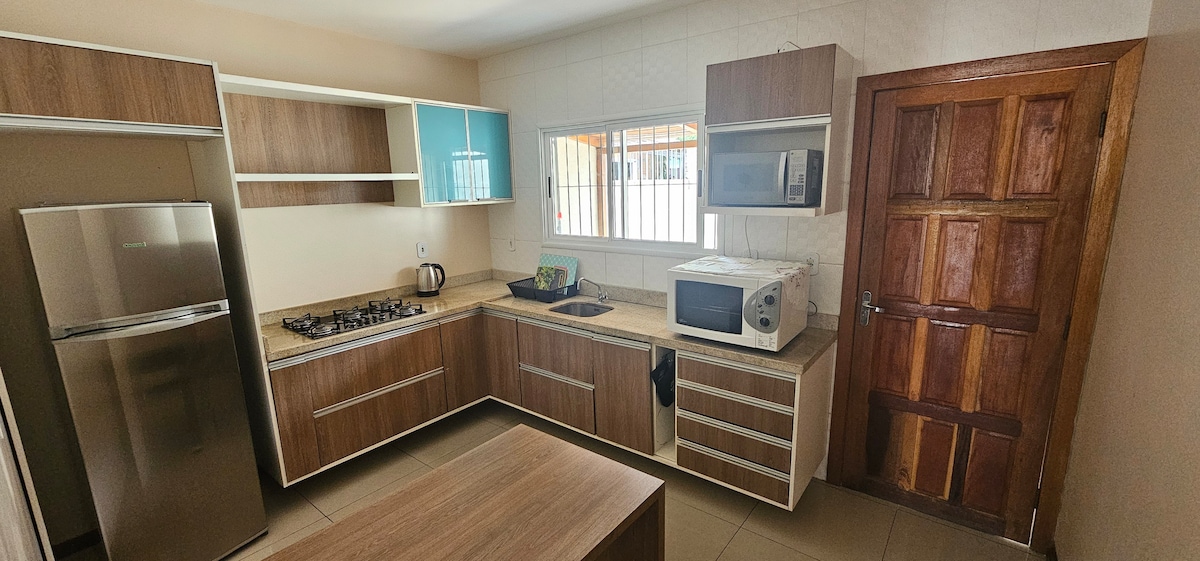 Fullbúið hús, allt til reiðu til að taka á móti þér! Hér er loftkæling, eldhús, hagnýtt baðherbergi, vinnusvæði, verönd og grill. Vel staðsett nálægt sjúkrahúsi Santa Casa de Uruguaiana, apóteki og markaði. Tilvalinn staður fyrir þá sem vilja þægindi, hagkvæmni og vellíðan. Aðgangur að hlið Churrasco na Brasa grillsins.