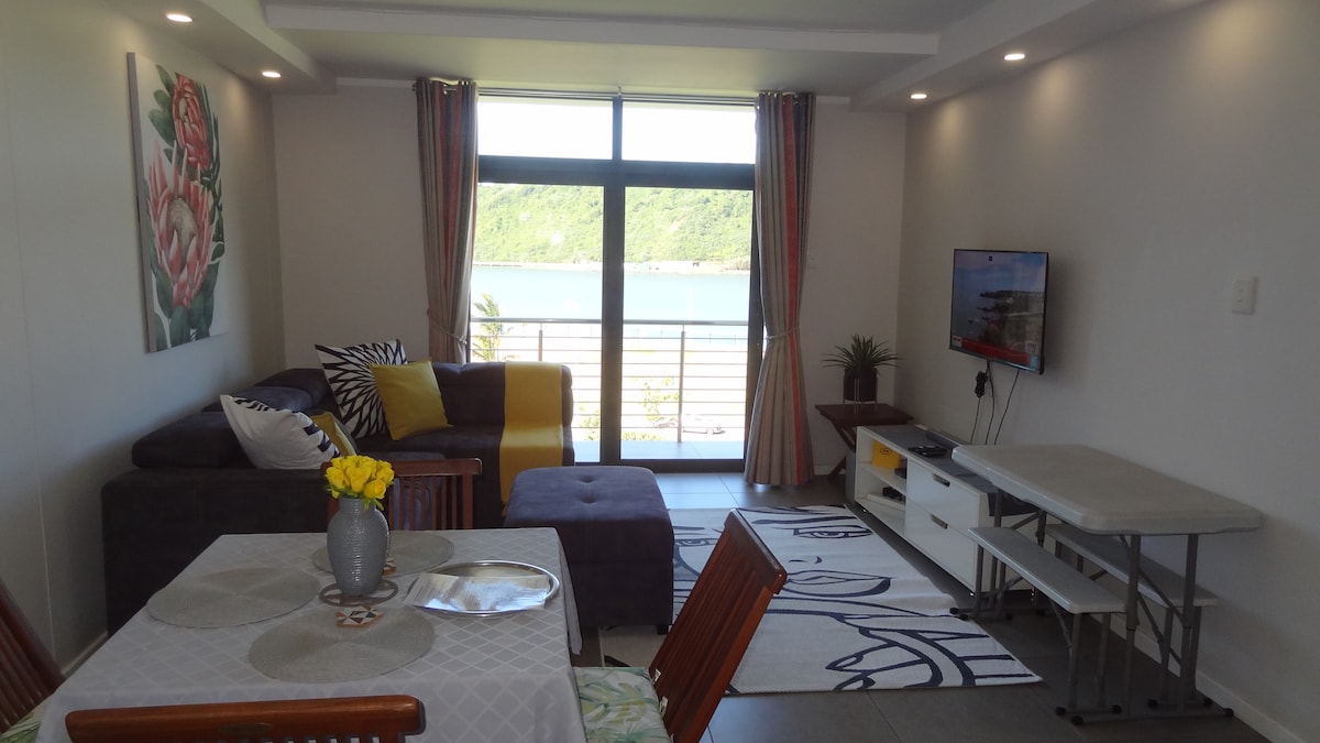 Nýlega uppgerð með öllum þægindum heimilisins. Slakaðu á með espressokaffi í fallega skreyttu íbúðinni okkar með útsýni yfir höfnina í Durban og skipin. Þú ert í göngufæri frá glænýrri Passenger Terminal, mörgum veitingastöðum og börum sem og Ushaka Marine World og göngusvæðinu við ströndina. Eldhúsið í íbúðinni er með ísskáp/frysti, þvottavél, örbylgjuofni, tekatli, brauðrist og kaffivél. Þar er ofn og rafmagnsmótor og allar nauðsynjar eru afhentar gestum. (Ferskt malað kaffi, te, heimabakað rúskinn, mjólk og sykur). Íbúðin er einnig búin öllum áhöldum, pottum, pönnum, krókum, hnífapörum, glösum og auka sólbekkjum (sem bjóða upp á fat, salatskálar, kampavínsfötu o.s.frv.). Aðalherbergið er með queen-size rúmi (2 manns) og það er einn svefnsófi (1 manneskja) með rúmfötum (SNooZA) í setustofunni (Að hámarki 3 manns geta gist). The SNooZA fellur aftur í snyrtilega ottoman þegar þú þarft það ekki. Íbúðin er með einkasvalir fyrir gesti. MIKILVÆGT: Íbúðin er sjálf nóg og hefur allt sem þú þarft. Ef það er eitthvað sérstakt sem þú þarft skaltu senda okkur fyrirspurn. Vinsamlegast athugið að íbúðin er ekki þjónustuð daglega. Þjónustugjaldið er fyrir þrif og þjónustu við íbúðina eftir útritun. Ef þú þarft á húsþrifum eða þrifum að halda er boðið upp á viðbótarþjónustu við þrif, þvott og/eða straujun sem þú getur óskað eftir eftir. Þetta er aukakostnaður. Inn- og útritunartími er leiðsögumaður og sveigjanlegur að því tilskyldu að íbúðin sé þjónustuð og tilbúin og hægt sé að bjóða hana. Íbúðin er í Durban Point Waterfront, sem er í umsjón héraðs og er að verða vinsælla og eftirsótt svæði. Það er nálægt veitingastöðum, flottu nýju brugghúsi, kaffihúsum og börum og héðan er stutt að fara á ströndina, glænýja Cruise Passenger Terminal, Durban Promenade og Ushaka Marine World. Það er úthlutað öruggt, yfirbyggt bílastæði í kjallara fyrir íbúðina. Ef þú ert ekki með bíl getur þú notað Uber, en það er einnig regluleg og áreiðanleg rútuþjónusta í boði daglega á Signal Road pallbílnum. (sjá kort) Eftirfarandi er einnig til staðar þér til hægðarauka: - Stafrænt öryggishólf - Lautarferð karfa - Strandhandklæði og lautarteppi við ströndina (einnig er hægt að fá strandhlífar sé þess óskað) Allir gluggar eru með öryggisvörðum og byggingin er með 24 klukkustunda öryggi og cctv til öryggis fyrir þig Ef þú þarft á frekari beiðni að halda, hefur sérstakt tilefni eða þarft á einhverju að halda skaltu láta okkur vita og við munum gera okkar besta til að koma til móts við þig við innritun. MIKILVÆGT: Ekki er heimilt að sýna nágrönnum virðingu, háværa tónlist, veislur/viðburði og kolagras. Afrit af reglum um fyrirtæki er að finna í gestaskránni.