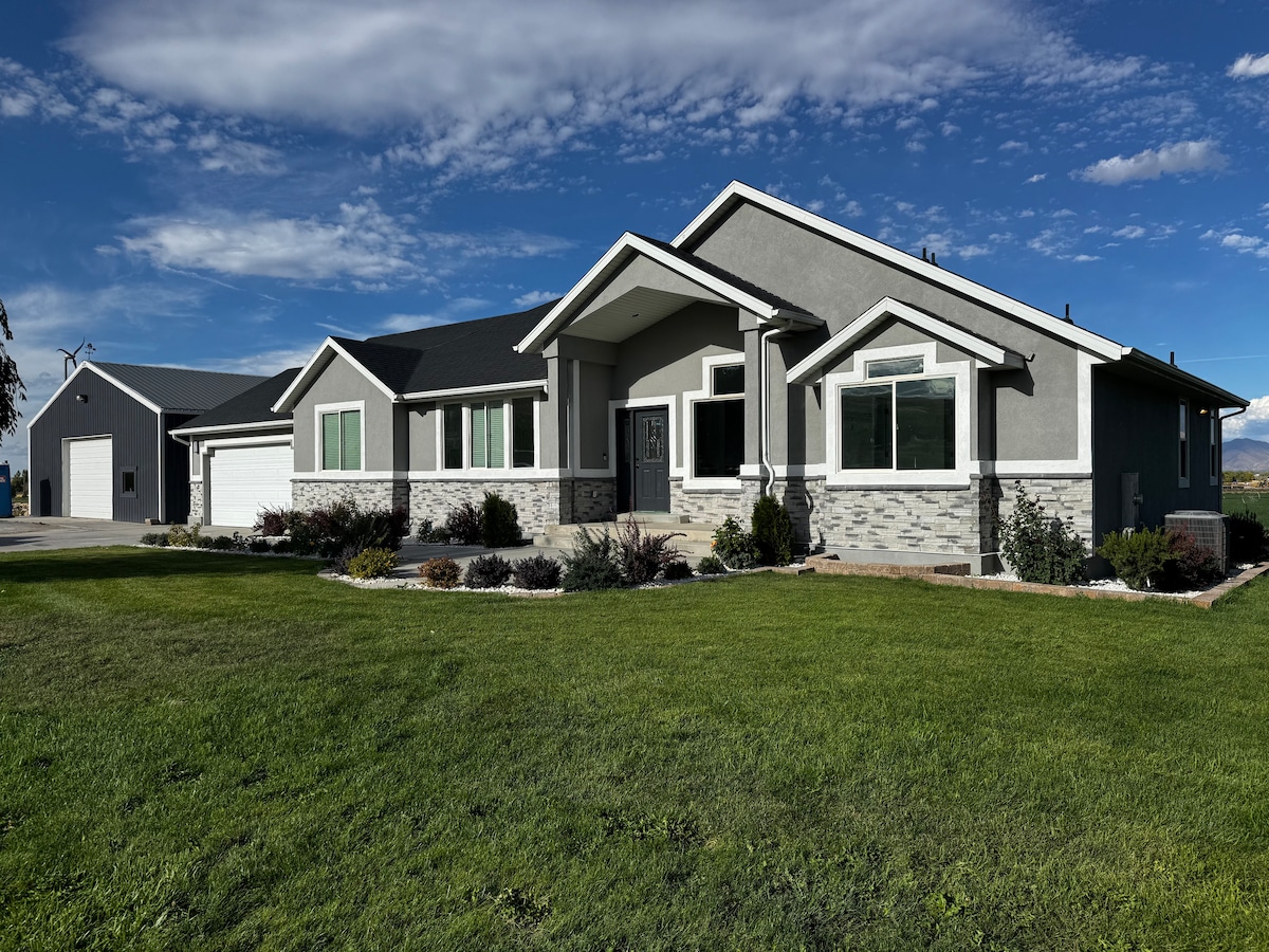 Hot Tub and Patio Theater Room Kitchen Fire Pit BBQ Views This suite is a destination in and of itself. It is located in the beautiful mountain valley of Heber City and is surrounded by open fields on two sides. Relax in the private hot tub, unwind in the theater room, or enjoy stunning views of the surrounding mountains. Conveniently located 20 minutes from Park City and Sundance. Enjoy nearby ski resorts, lakes, golf courses, cross-country skiing, snowmobiling, hiking, fishing, and more.