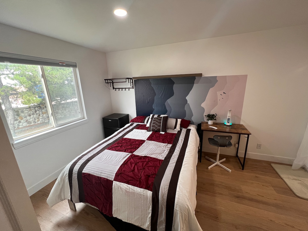 Velkomin í nýuppgerða litlu íbúðina þína í hjarta Moab. Þessi glæsilega eign með tveimur svefnherbergjum og einu baðherbergi er með tvö king-size rúm, nútímalega innréttingu og rólega hönnun sem sækir innblástur til eyðimerkurinnar. Hún er fullkomin fyrir pör, vini eða ferðamenn sem vilja njóta þæginda og ganga um í göngufæri.