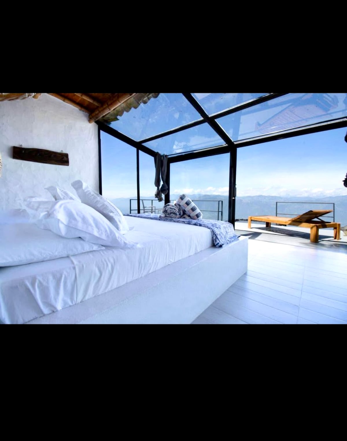 Our concept is privacy and comfort in the middle of nature, each room has a high standard king bed for your comfort, all rooms have a direct view of the lake, balcony and private bathroom; the jacuzzi located at the top of the mountain under the imposing eucalyptus trees . You will enter to the house through the mountain and through the roof, to find a cozy space with a wonderful view of the lake, with the most special details. we have our special menu and cook service to make your stay unique