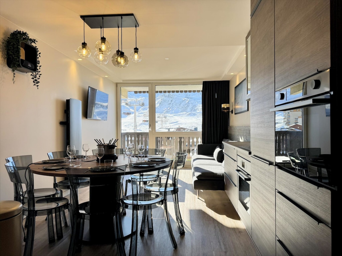 Bienvenue dans cet appartement familial chaleureux et moderne, situé au cœur de Val Thorens (entre l'Église et l'office du tourisme) avec un accès direct aux pistes depuis l'immeuble. Appartement calme de 70m2 pour 8 personnes entièrement rénové en 2025. Profitez d'une exposition plein sud avec vue panoramique sur la chaine de montagne depuis le séjour, les chambres 1 et 2 et les balcons.