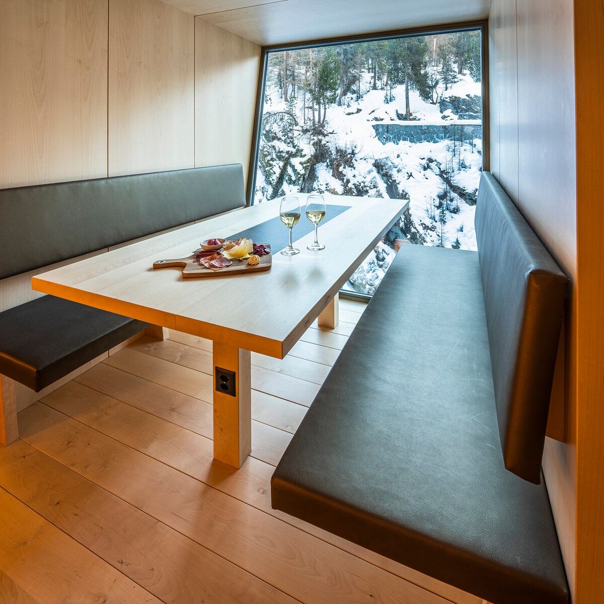 The separate tower entrance leads to the unique luxury suite in the middle of the Fee Gorge. Upplifðu jákvæða orku hins magnaða gljúfurs í borðstofunni beint fyrir ofan jökulvatnið eða sofðu þægilega við hliðina á risastóra steinberginu. Rúmgóða svítan með einkaútisundlaug býður upp á hreina afslöppun. Þetta er innifalið: - Morgunverðarhlaðborð - Dagleg þrif - Ókeypis strætó + fjallalestir á sumrin - Afsláttur fyrir bílastæðahús og 30 tilboð...