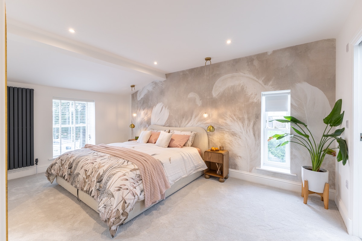 Glænýtt og stílhreint heimili með 10 svefnherbergjum Ratford Bridge Farm House er fullkomin staðsetning fyrir stórar fjölskyldur sem koma saman. Þetta heimili er staðsett í stórfenglegri sveit Wiltshire með fallegu útsýni og tonnum af plássi til að komast í burtu. Í húsinu eru 10 frábærlega þægileg svefnherbergi, 10 nútímaleg baðherbergi, stór fjölskyldustofa/kvikmyndasalur, þægileg stofa, rúmgott eldhús, aukaeldhús, borðstofa og rúmgóðir vel hirtir garðar og verandir.