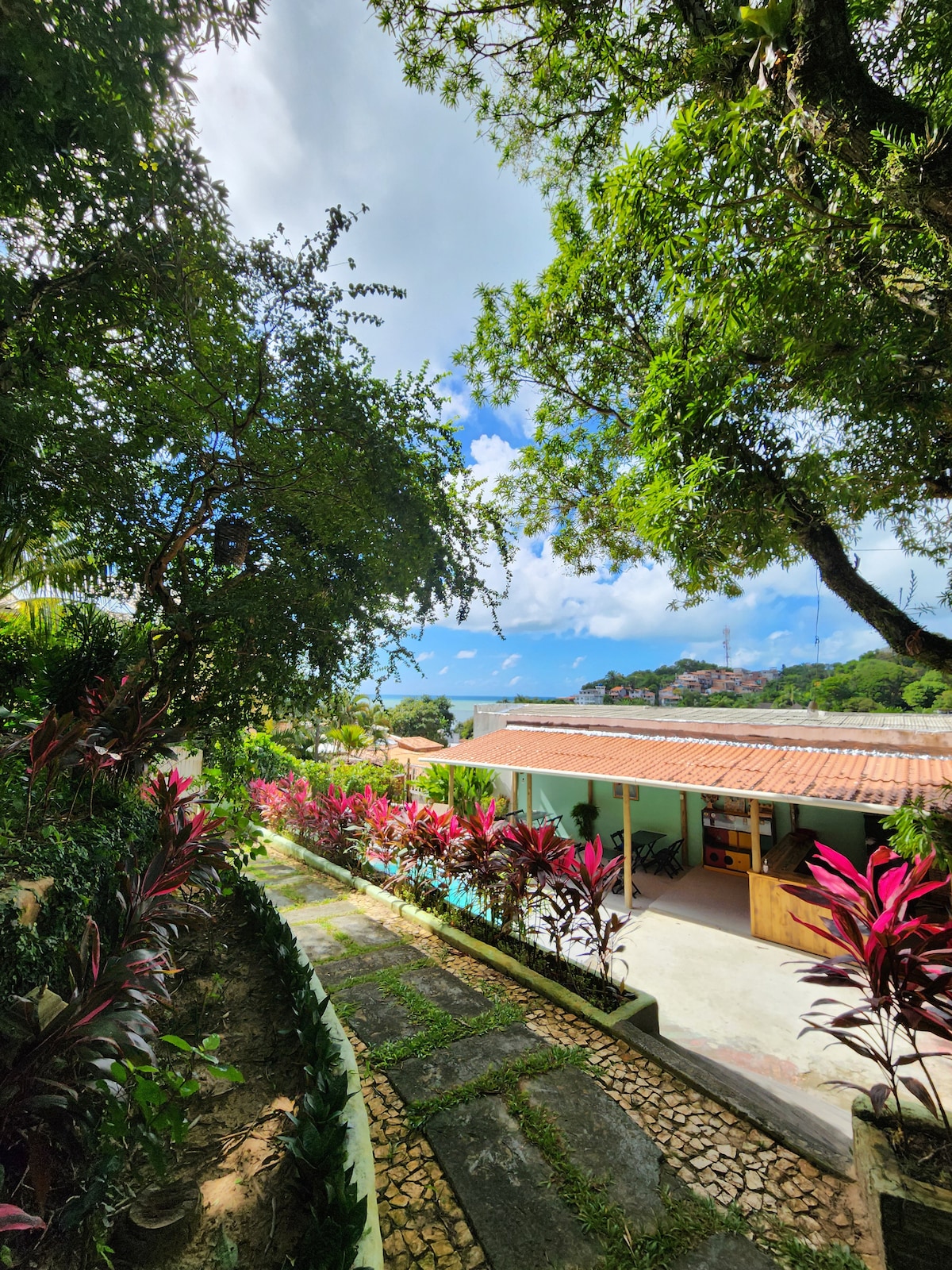 Þetta gistiheimili á vinsælu eyjunni Tinhare (Morro de Sao Paulo) mun gleðja þig með stórfenglegri staðsetningu umkringd náttúrunni. Vingjarnlegir gestgjafar þínir munu skemma fyrir þér með frábærum morgunverði og hjálpa þér að setja saman ógleymanlega dagskrá á eyjunni (gönguferðir, siglingar, kanóferðir, kennslu í Capoeira, tónlistartíma o.s.frv.). Aðeins er hægt að komast á háflóð í gegnum ströndina með blautum fótum eða leigubát. Þetta verður að hafa í huga þegar dagurinn er skipulagður.