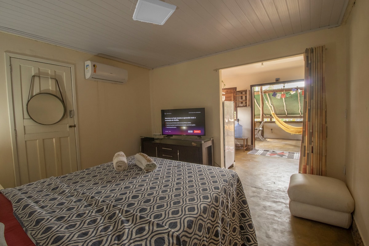 Chalé Sereia is a cozy, independent bungalow within Vila Entreluas. Decorated with care and sensitivity, creating a light, comfortable and inspiring environment. Surrounded by nature and the peaceful climate of the village, it offers privacy, silence and well-being, ideal for slowing down, staying focused or simply enjoying the connection with the natural surroundings. The chalet combines warmth, functionality and a magical atmosphere in a special, well-located retreat.