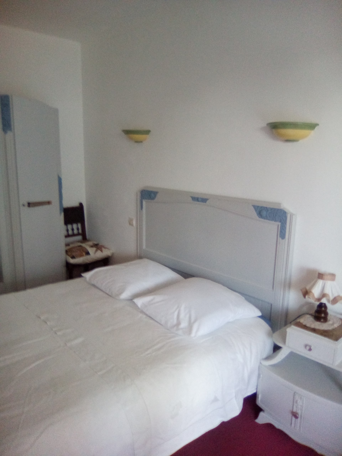 Við bjóðum þig velkominn á nýlegt heimili okkar. Annað svefnherbergið á efri hæðinni er aðeins fyrir gesti; baðherbergi og salerni á efri hæðinni, til að deila, ef við á, ef hitt svefnherbergið er einnig leigt út. Í svefnherberginu er sjónvarp, WI FI og vifta á sumrin. Athugið: enginn aðgangur að eldhúsi og engar máltíðir í herberginu (nema barnamáltíðir, flaska, lyf...). Reykingar leyfðar á útiveröndinni.