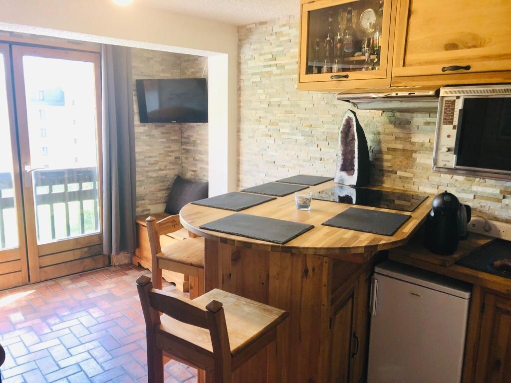 í 1850 m hæð, lítið endurnýjað 21m2 stúdíó, með svefnsófa fyrir PAR og litlu háu rúmi fyrir BARN á aldrinum 6 til 14 ára), vel útbúið og mjög hagnýtt sem snýr í suður með mjög góðu útsýni og svölum án þess að vera með útsýni, kyrrlátt og nálægt skíða- og göngubrekkunum og miðju dvalarstaðarins fótgangandi. litla stúdíóið ER AÐEINS GERT FYRIR PAR OG BARN OG HENTAR EKKI FÓLKI MEÐ TAKMARKAÐA HREYFIGETU STUDIO 1st Floor LES LAUZIERES Appt 202. við enda Rue des Soleils