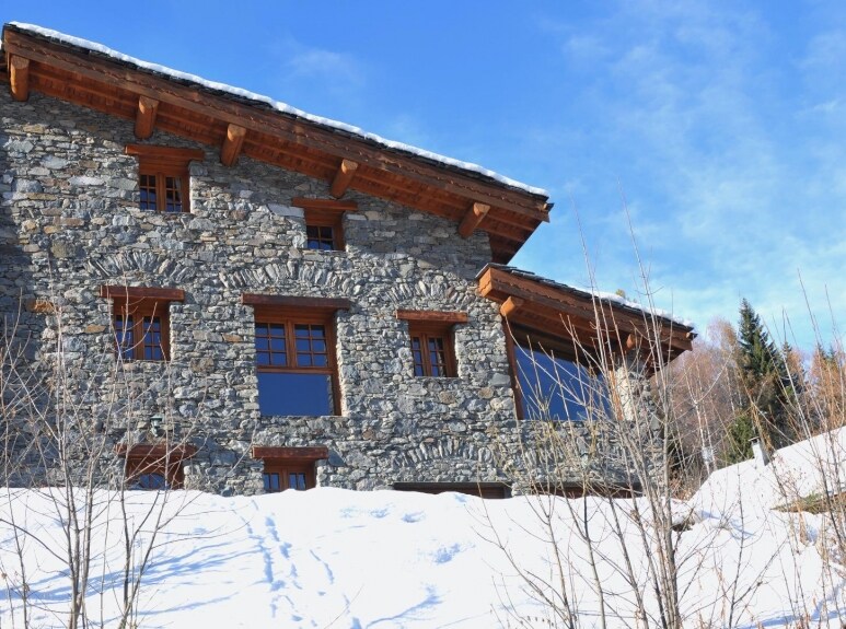 Andrúmsloft, upprunalegur steinskáli í Meribel