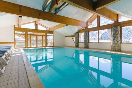 Skáli við rætur brekknanna með upphitaðri sundlaug