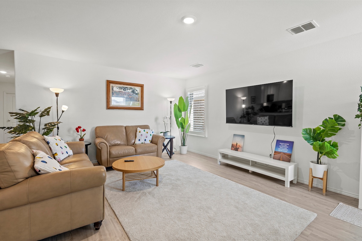 Verið velkomin á stílhreina, endurbyggða múrsteinsheimilið okkar þar sem tímalaus sjarmi fullnægir nútímaþægindum. Þessi notalega og hlýlega eign hefur verið uppfærð á úthugsaðan hátt með nýrri innanhússbyggingu til að skapa hlýlegt og notalegt andrúmsloft sem er fullkomið fyrir næsta frí þitt. Á heimilinu er rúmgóð stofa sem er hönnuð til afslöppunar og bakveröndin er tilvalinn staður til að slaka á, njóta morgunkaffisins eða verja tíma með vinum. Hvort sem þú ert að njóta sólarinnar eða njóta kvöldgolunnar.