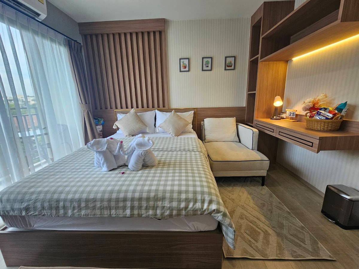 - Fjórða hæð, lyfta í boði - 2 svefnherbergi, 1 fullbúið baðherbergi, aðskilinn blautur og þurr hluti - 55 Sq Meter, 580 Sq Ft - Einkasvalir með sjávarútsýni - 24 klst öryggisvörður og viðgerðartæknifræðingur á staðnum - walkscore 74 : "Very Walkable" - Göngufæri við Cicada-markaðinn, þægilegar verslanir, veitingastaði. - Eign við ströndina með beinum aðgangi að strönd - Fyrir langdvöl (28 nætur eða lengur), veitur (rafmagn og vatn) *innheimtar sérstaklega* við raunverulega notkun án frekari álagningar.